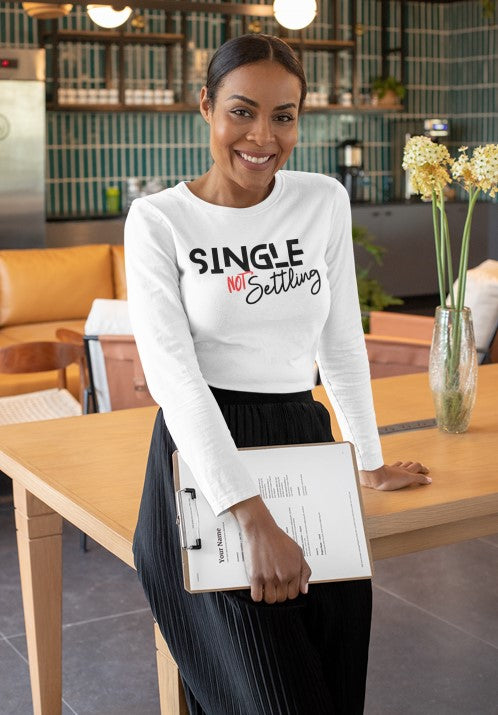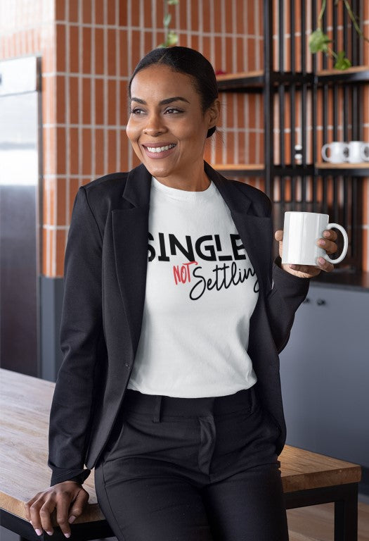 You’re single, but don’t get it twisted—you’re not waiting in desperation or scrambling for attention. You’re single because you refuse to settle for less than what aligns with your values and vision. The "Single Not Settling" tee is more than just a shirt—it’s a declaration. It’s for those who are secure in their singleness, unapologetically confident, and open to the RIGHT person when the time is right.